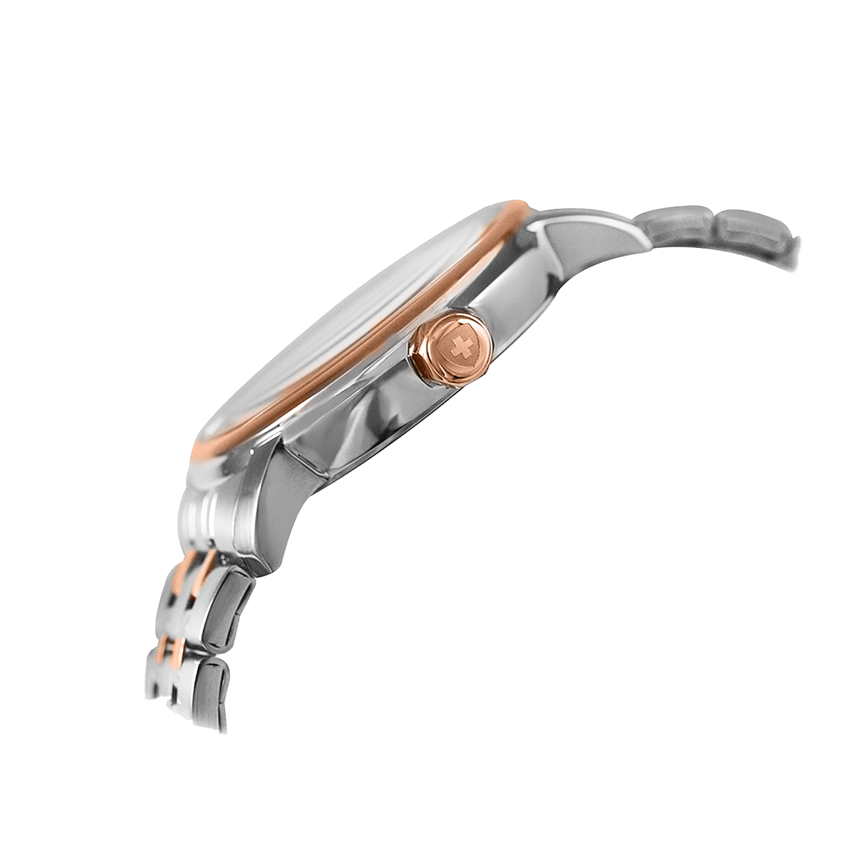 Montre Nivada bicolore pour femme avec date, cadran argenté, chiffres romains