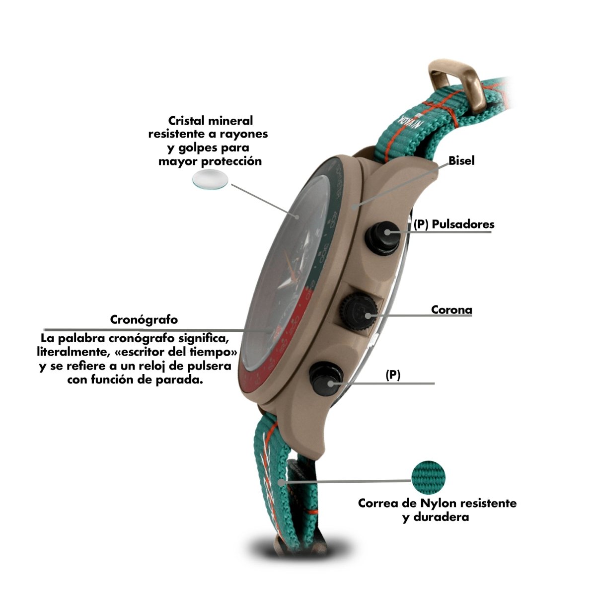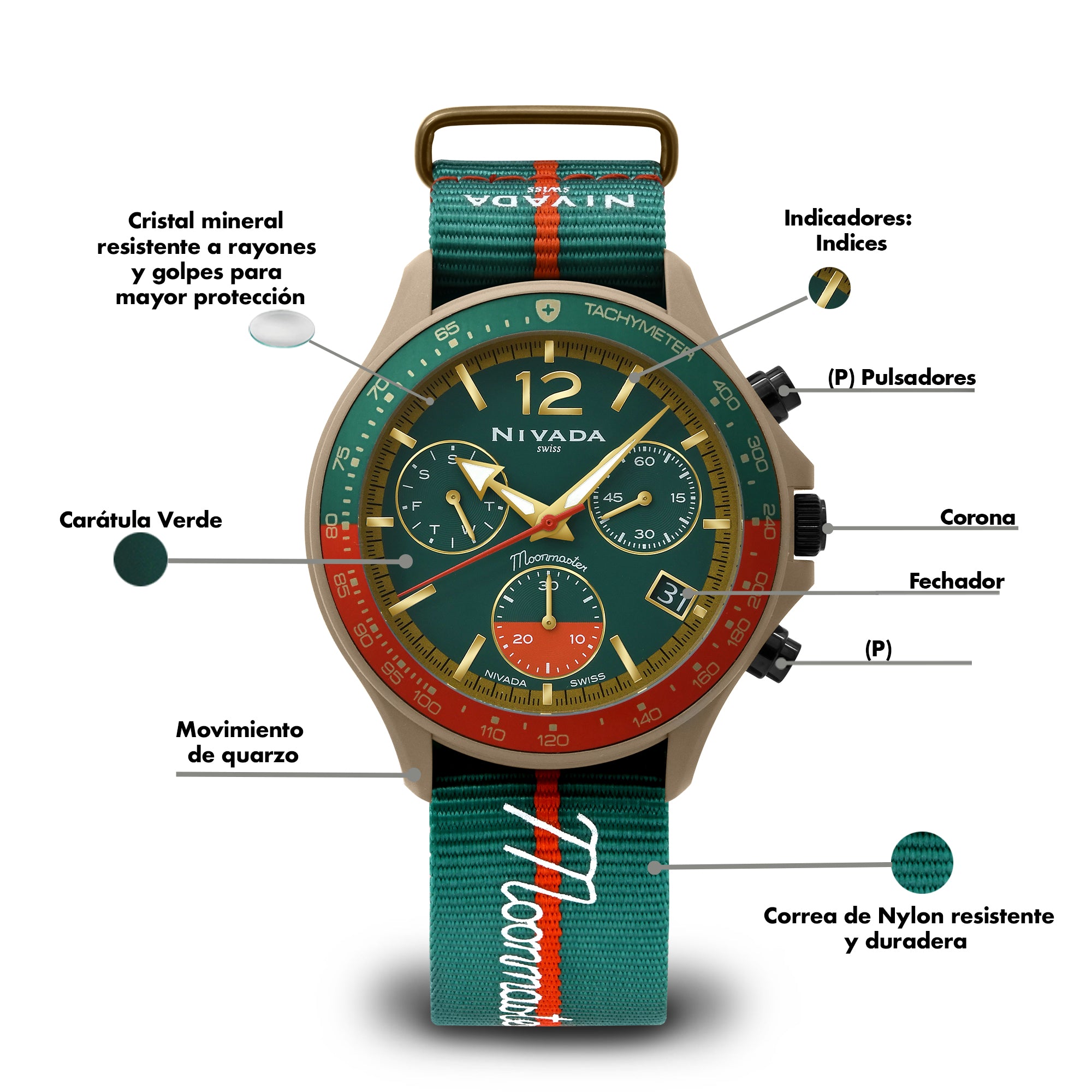 Montre Nivada Moonmaster Nano Ceramic Nato avec cadran vert arabe.